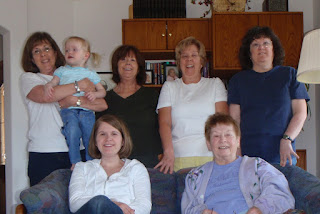 As one last fun adventure while I was on leave the kids and I headed over to Chelan last Thursday to Grandma and Grandpa C's house for a visit. My Aunt Diane, Aunt Wendy, Aunt Bonnie and Grammy were over visiting too. There were plenty laps ready for loving babies. We worked on the Thanksgiving table cloth and got almost all of it done. What will I do with my evenings in November? Thanks to all who worked on it, it's a lot more fun to work on it with others. Here's all the ladies in Chelan when we were learning how to use the features on our cameras.