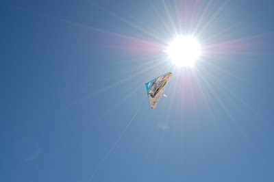 Ben's kite soaring up to the sun. It was a wild kite and also went swimming in the water.